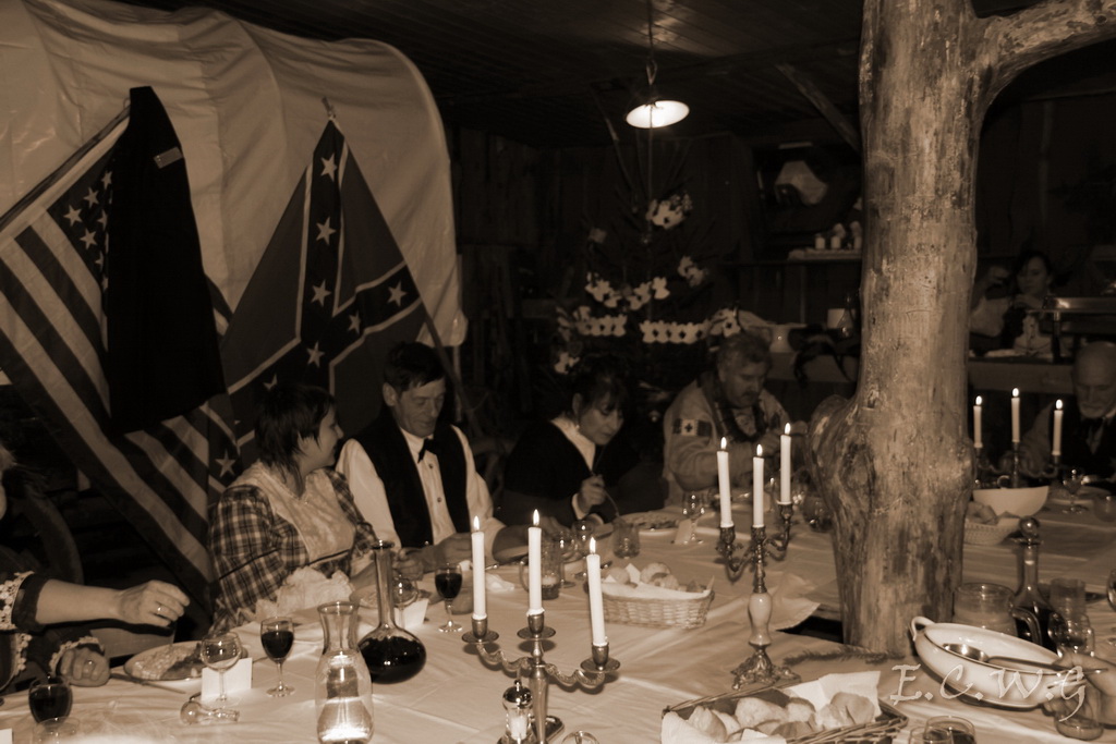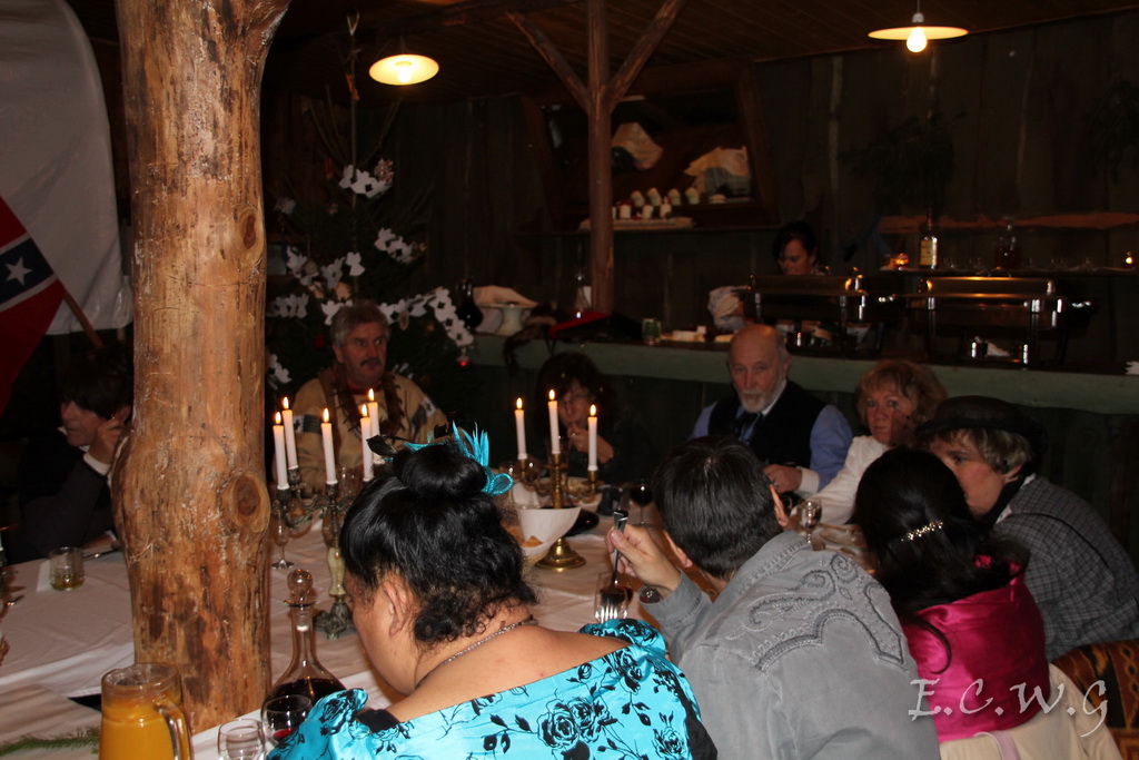 L’Elsasser Civil War nouvellement constitué, ne voulait absolument pas disparaitre seul, le jour de la fin monde!!!! Un dîner le 21 décembre 2012 a donc été organisé dans le Saloon du Round’up d’Obersoultzbach. Tous les membres de cette belle amicale ont redoublé d’efforts pour faire de ce diner un moment convivial et festif. Des invités de marque étaient également présents. Monique et Jean-Paul, Chantal et Etienne, les représentants de l’ASL d’Obersoultzbach, mais aussi des hôtes venus de loin, très loin, du Mexique, Monica et Patrick frère du sergeant Daugherty. Le cadre exceptionnel du saloon a permit à l’ensemble des participants d’apprécier cette soirée. Finalement, après avoir survécut à la Fin……………de la soirée et non du monde, tout le monde s’est quitté en se promettant de renouveler l’opération en 2013!!