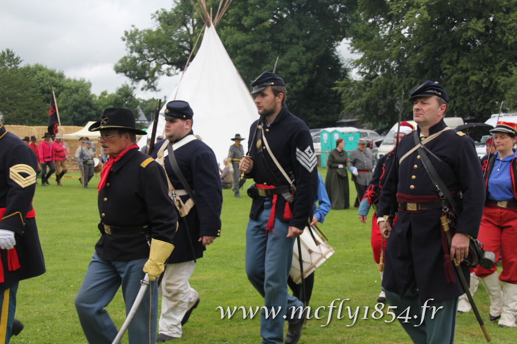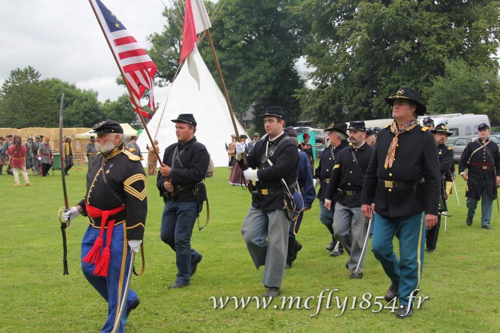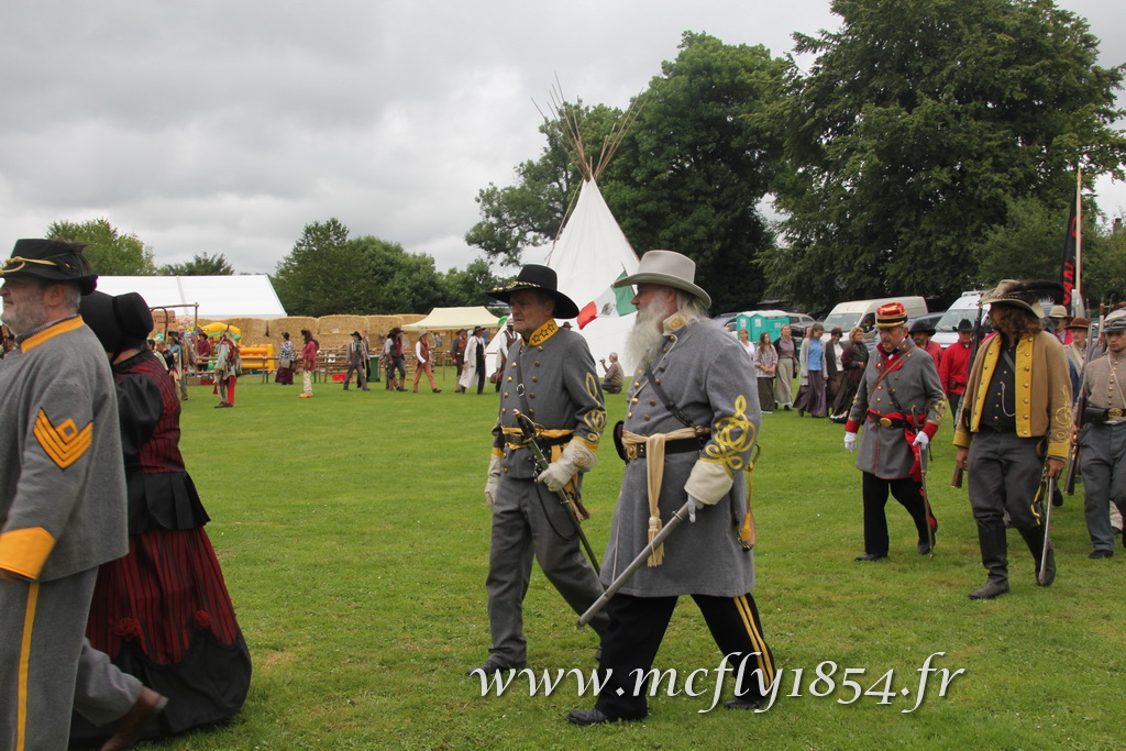 Malgré une météo incertaine, le public venu nombreux a pu retrouver les passionnés du monde Western et surtout amérindiens. Pour nous cela a été un moment important de retrouvailles avec nos amis Belge. Dans les 2 camps (nord et sud) de nombreux officiers étaient présent. Le Général US Thomas et le général CS Hood qui étaient présent au 150ème anniversaire de Gettysburg en Amérique, nous ont décrit cette fabuleuse aventure. Le Général Ben Mc Coy d’IOCUM (International Order of Confederate & Union Militia) d’Allemagne était venu samedi rendre une petite visite. Pour sa première participation le Général CS Longstreet de L’Elsasser Civil War group était également là.